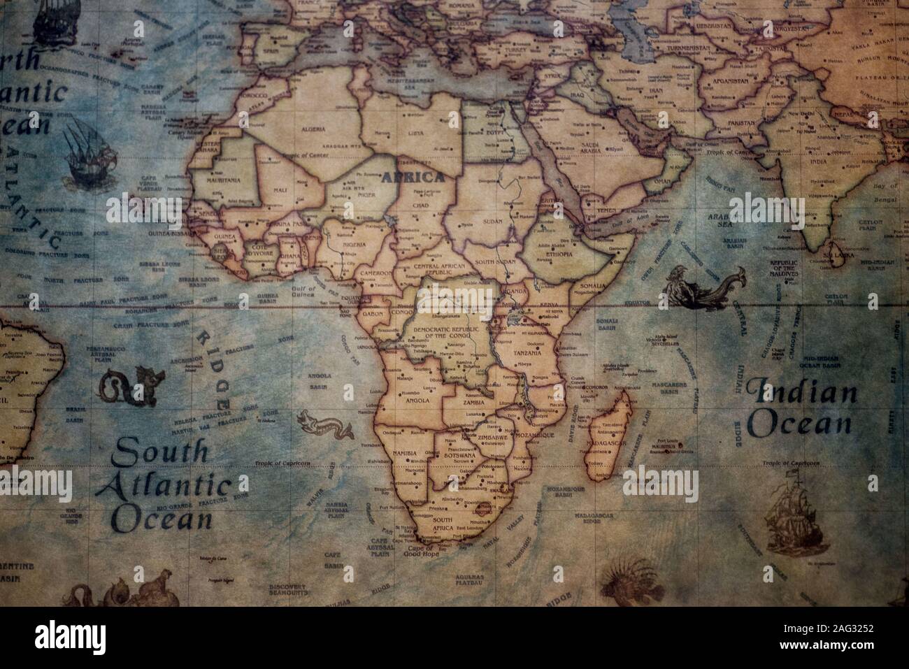 Closeup shot of Africa continent on a vintage map Stock Photo Alamy