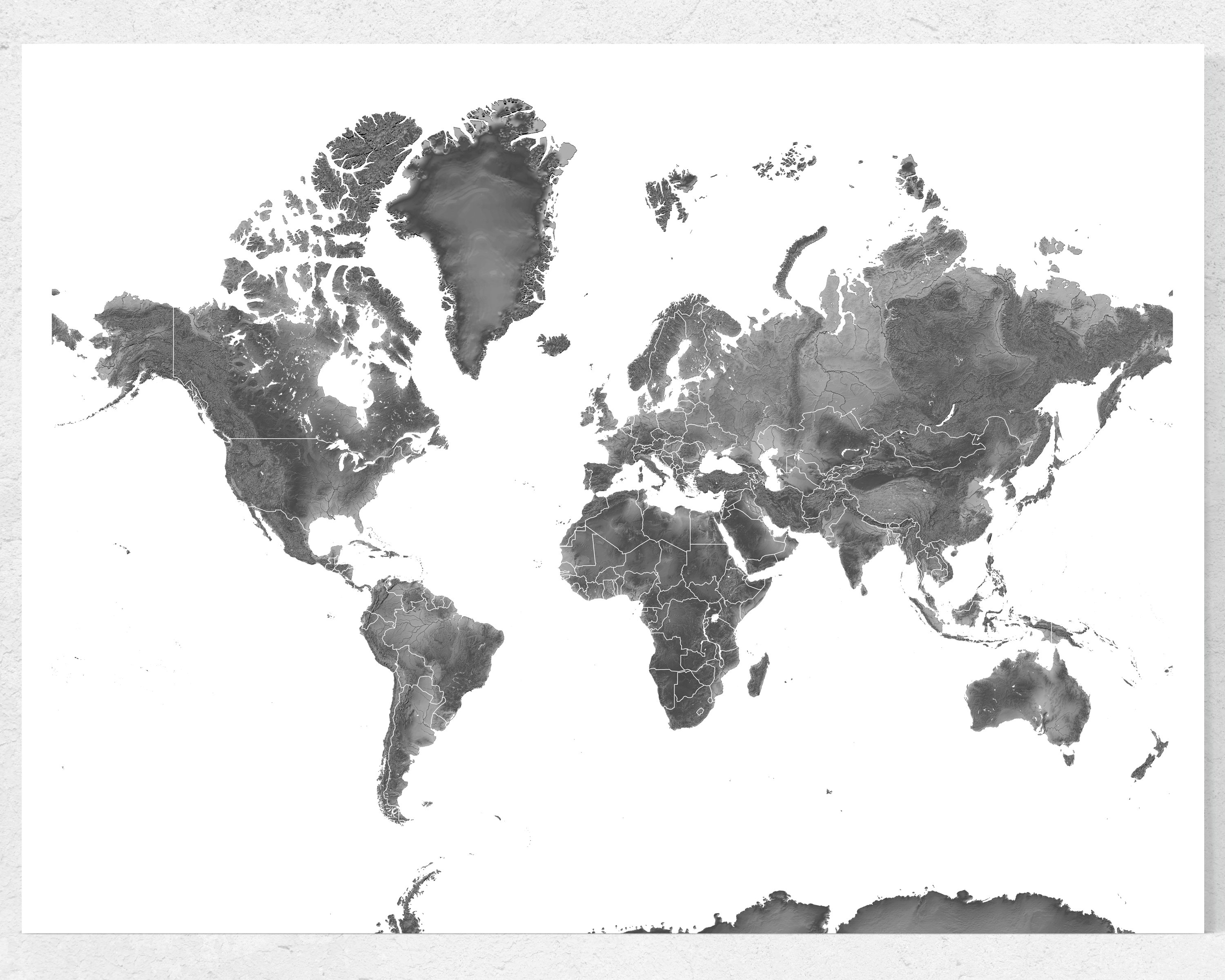 Black And White World Map Art