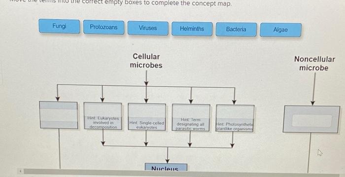 Solved ofrect empty boxes to complete the concept map. Fungi
