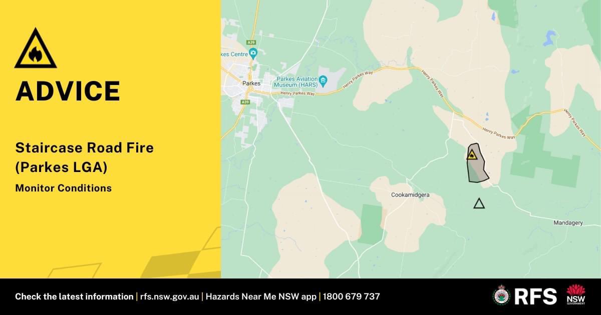 NSW RFS on X: “ADVICE: Staircase Road Fire, (Parkes LGA) Monitor
