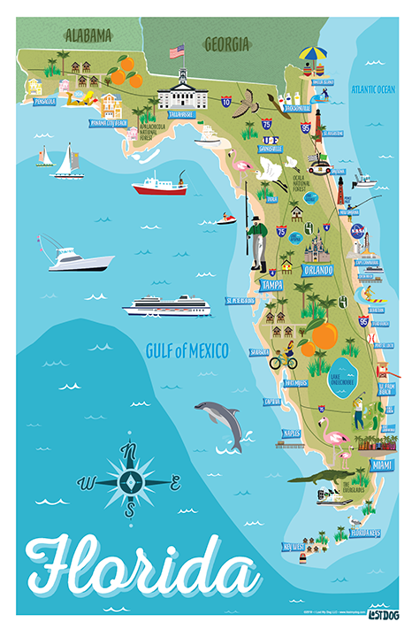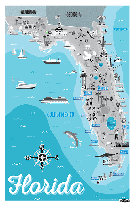 Illustrated Map Of Florida Florida Illustrated Map โ LOST DOG Art & Frame: The situation for hopeful homebuyers in South Florida has long been bleak you might still even pay more.โ Da Silva illustrated this with an example of two homes: one with a $575,000 . The son of an artist, he has no formal training beyond drawing maps, some also illustrated with jaunty animal life, from his earliest boyhood. Then as now, he said, he understood cartography .
