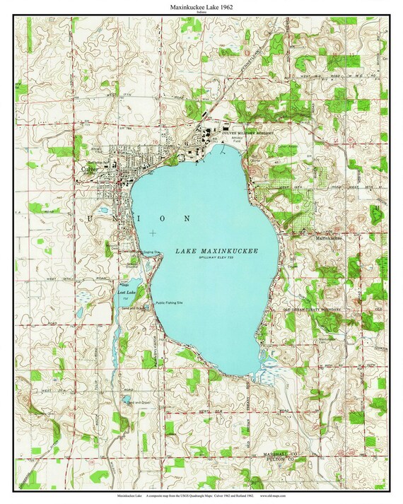 Buy Maxinkuckee Lake 1962 Old Topographic Map USGS Culver Lost